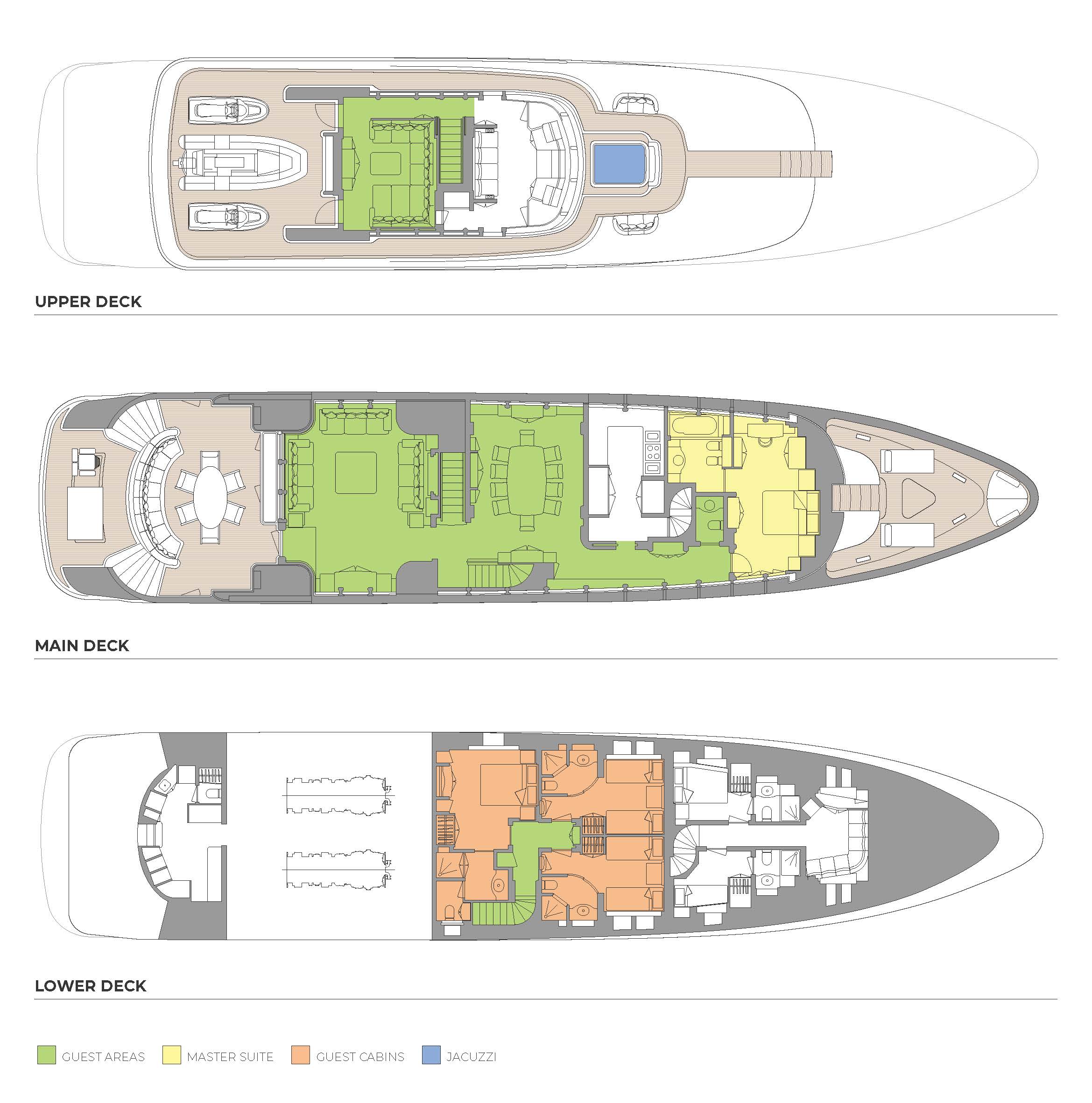 - Jacuzzi and sun lounging on the foredeck