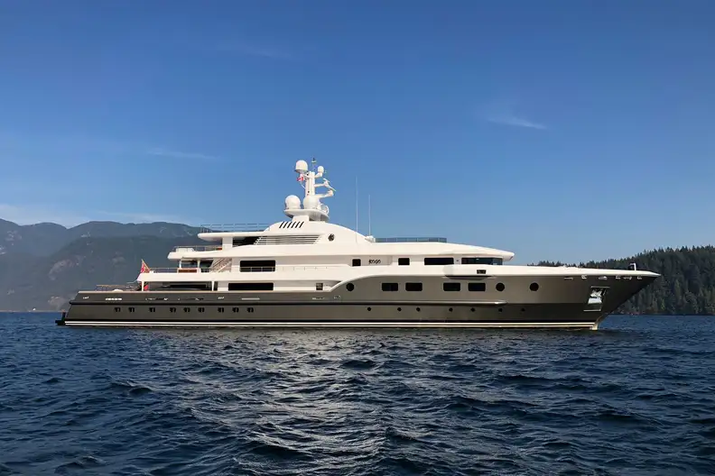 KOGO is a 71.7m (235.2ft) yacht with an ice-classed steel hull and aluminium superstructure built to Lloyd’s classification and MCA compliance, and delivered by French shipyard Alstom Leroux Naval in 2006. Her exterior design is by Tim Heywood, Terence Disdale Design created her interiors and naval architecture is by Burness Corlett Three Quays. The result of an extraordinary collaboration, KOGO won the World Superyacht of the Year award in 2007.