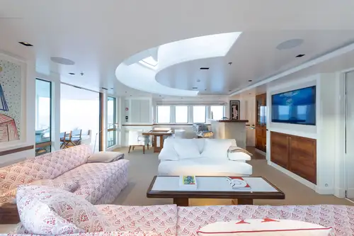In the afternoon, while the captain sails you to the next amazing destination, enjoy a movie in the main deck cinema lounge or catch up on some emails in the private owner's office on the bridge deck.