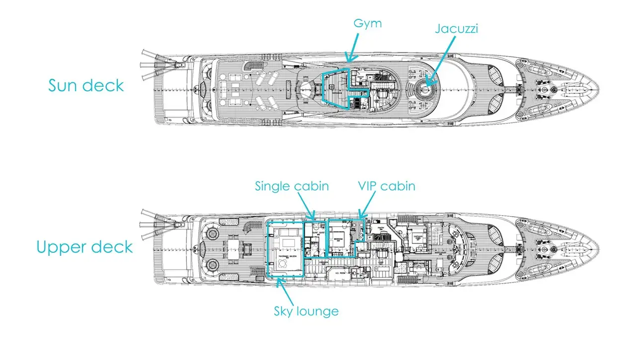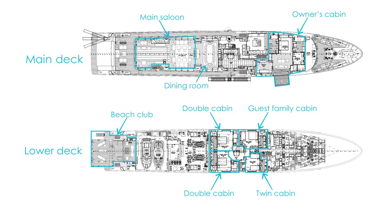 AIFER, a sensational 60m yacht, blends al fresco living with bright, spacious and colourful interiors. Guests love the beach club, huge sun deck with jacuzzi and gym, and welcoming interior lounge areas. After a substantial 2019 refit including a full repaint, the interiors and entertainment technology on the boat are in sparkling condition and ready to impress.