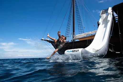 Originally built for families, DUNIA BARU makes for incredible adventures for both families and friends, with an expert crew of 18, including a cruise director, a dive instructor and a chef. She is equipped with the highest quality tech and active gear, including a Sonos Integrated sound system, top of the range dive gear, jetskis and more.
