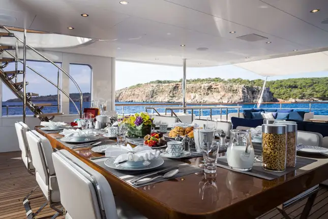 The large swim platform folds down from the transom for easy access to the water. The crew can also convert this area into the perfect beach club setup for guests to make the most of her huge selection of watertoys. Furthermore, her 4m extension has allowed GO to accommodate a 6.4m tender to make trips ashore that more comfortable for guests. GO fits all the criteria for a fun filled family charter!