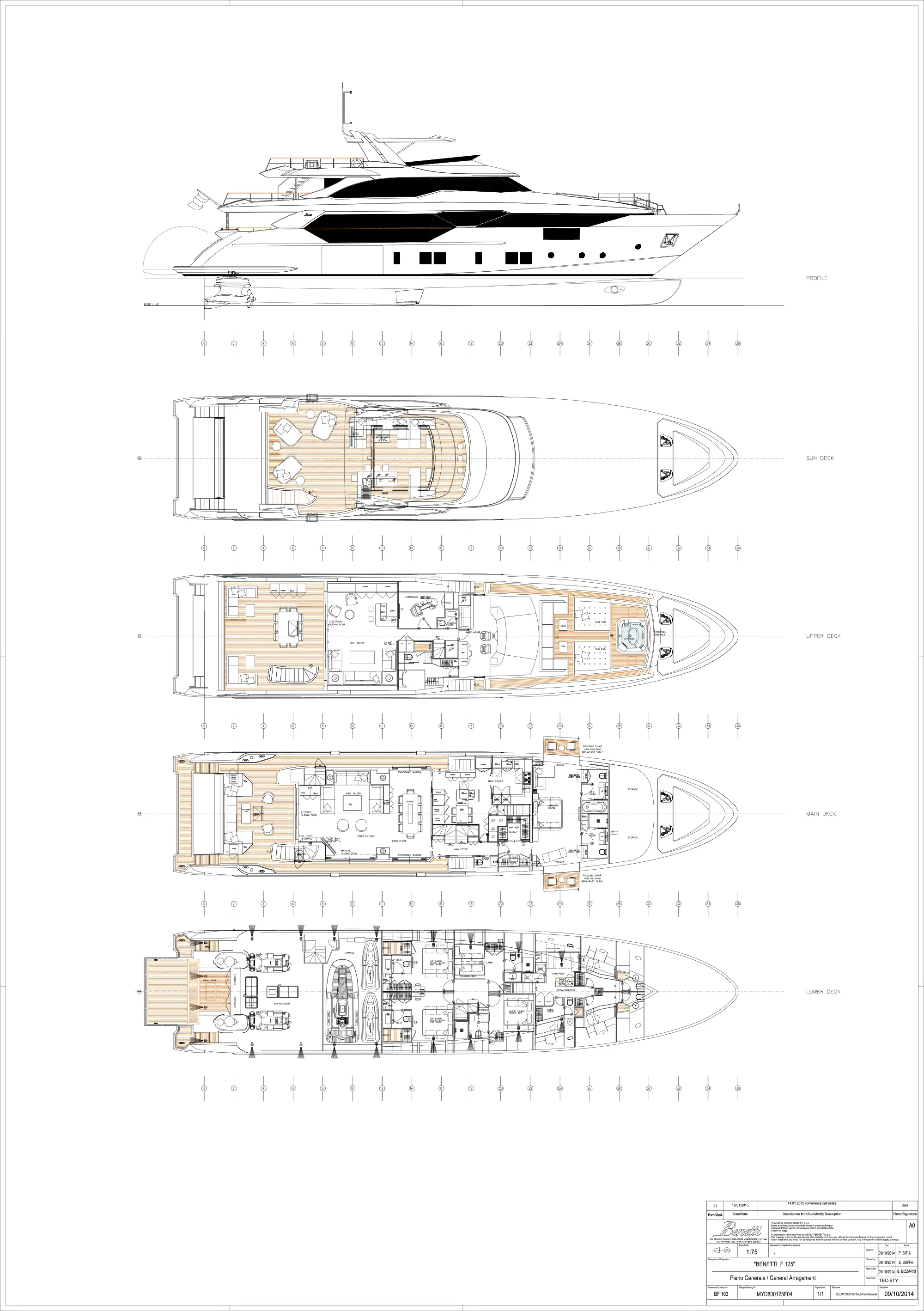 - Stylish foredeck jacuzzi area with large sun pads
