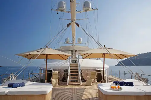 Experience the exhilaration of surging through sparkling waves under a cloud of sail, powered purely by nature, on board a yacht that sacrifices absolutely nothing in luxury, watertoys and features. From her spectacular main deck circus lounge - a unique feature - to her swim platform, she has it all.