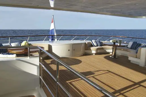 A good-sized swim platform can be set up with a small table and chairs so guests can enjoy being at the water’s edge. Access to the two tenders is made easy, not to mention access to LADY DEE's two stand-up jet skis and two waverunners. A good, all-round charter yacht.