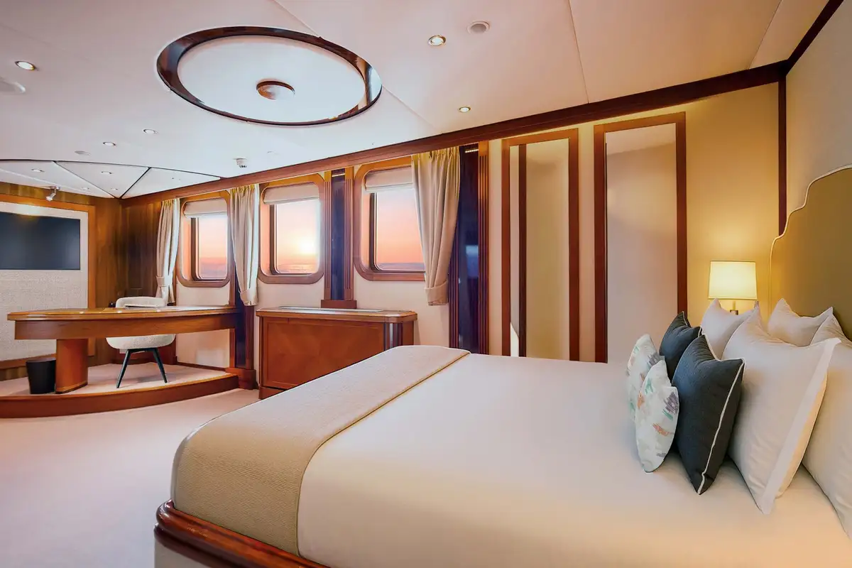 The yacht can also accommodate up to 10 expedition staff to run on shore and underwater trips and you could invite a scientist along and help to conduct game-changing research while learning about this precious environment.