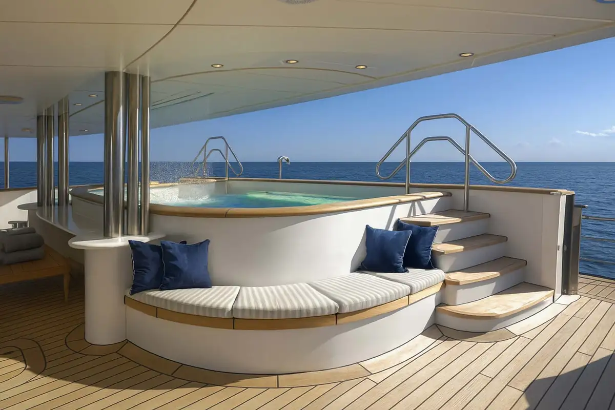 - 16-person jacuzzi on the main deck & 8-person jacuzzi in the spa