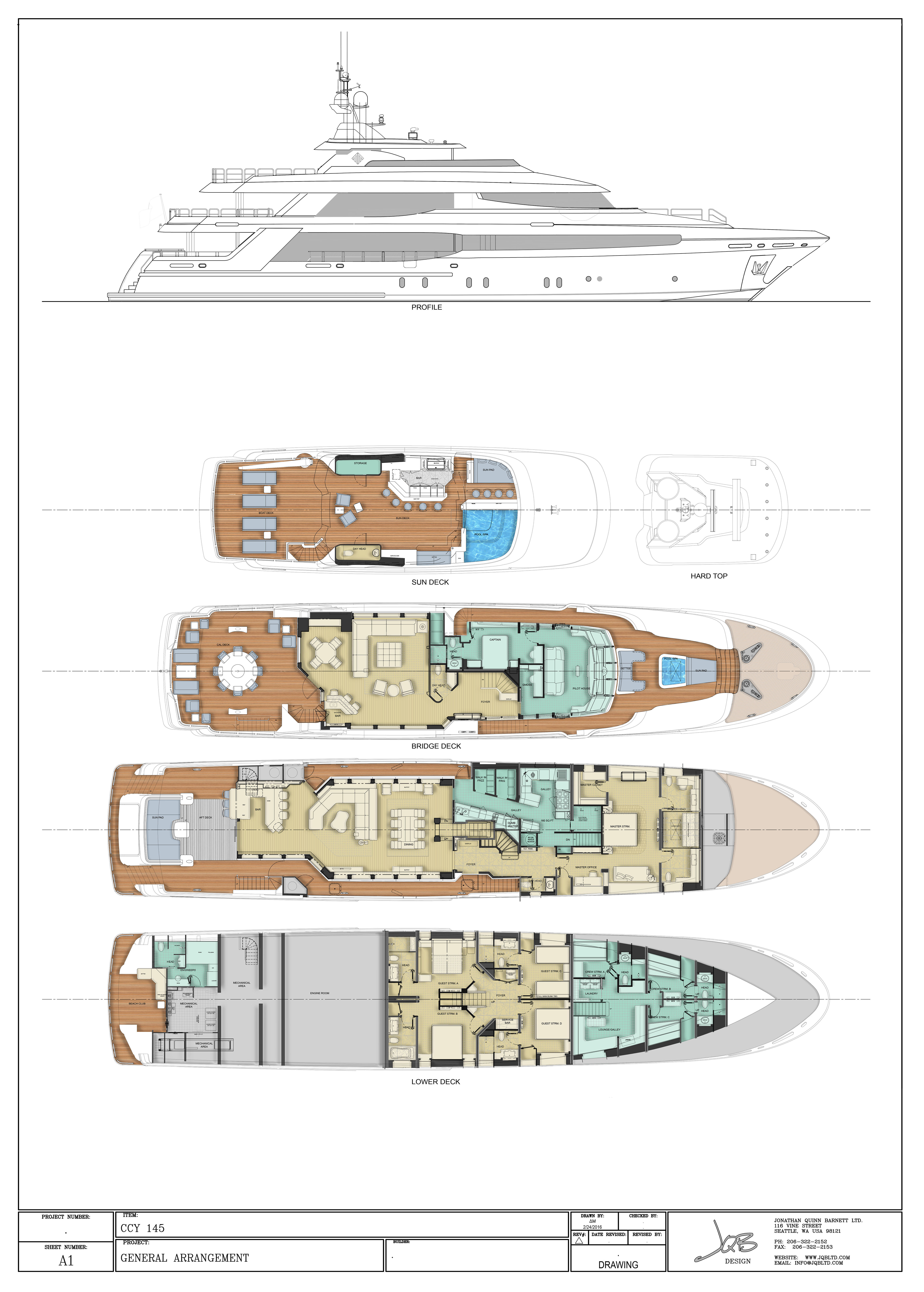 - Sleek foredeck with moon jacuzzi & plush sunpad