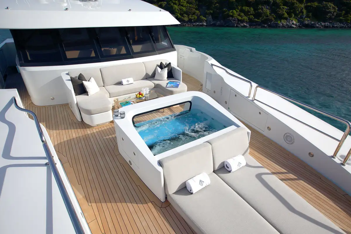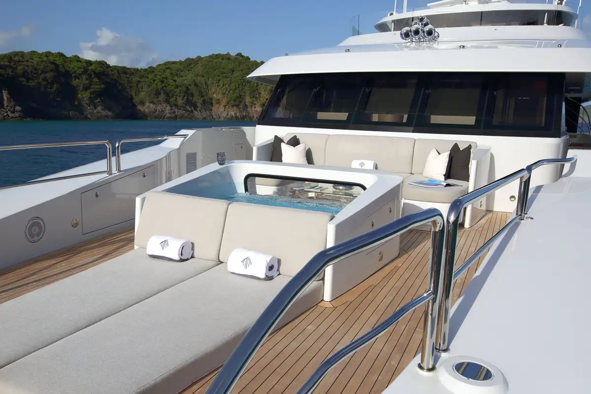 • Sleek foredeck with moon jacuzzi & plush sunpad