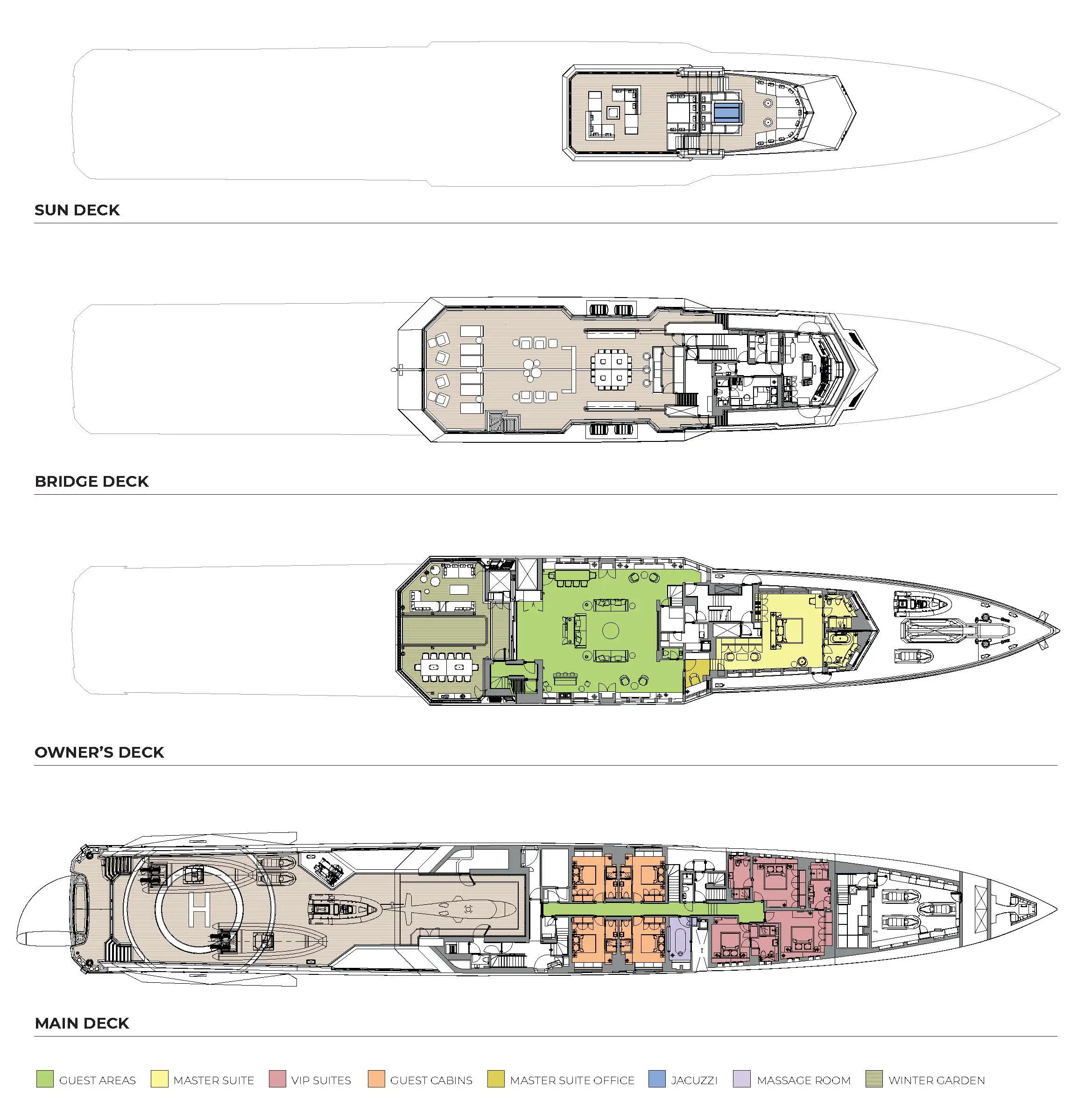 Her crew is dedicated to making every day on board amazing, with a particular flair for beach set-ups and watersports days. Zero speed stabilisers for comfort and a toy locker packed with Sea-Doos, SeaBobs, sailing dinghies, fliteboards, transparent kayaks, paddleboards and a host of tow toys, and you have an unbeatable package.