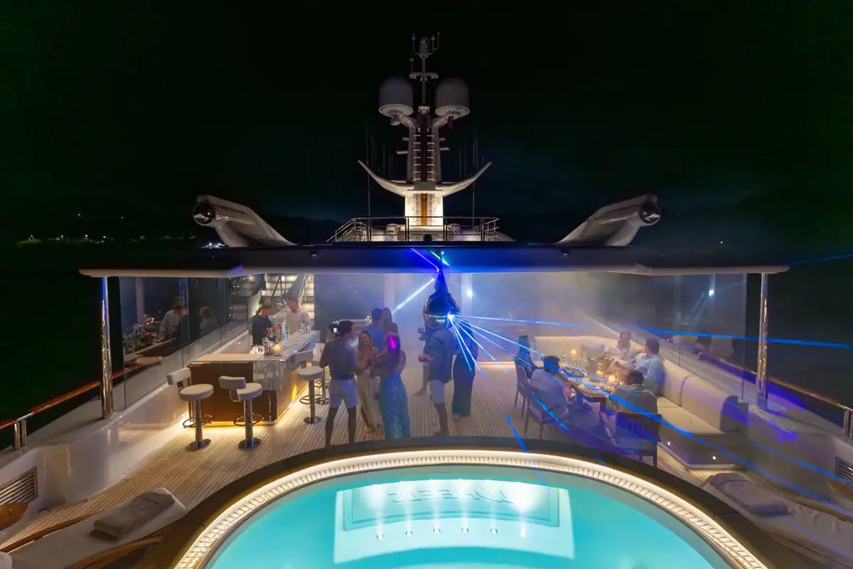 From her crow's nest observation lounge to her lower deck cinema, this feature packed, seven deck yacht delivers an unforgettable superyacht experience every time.