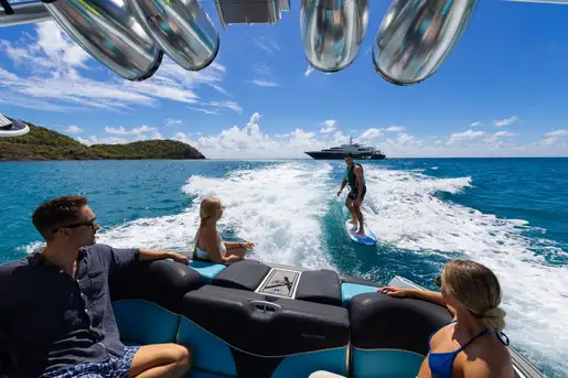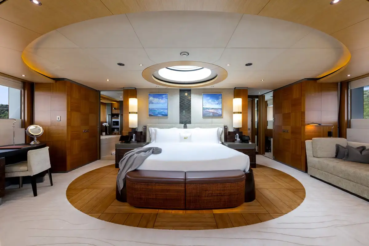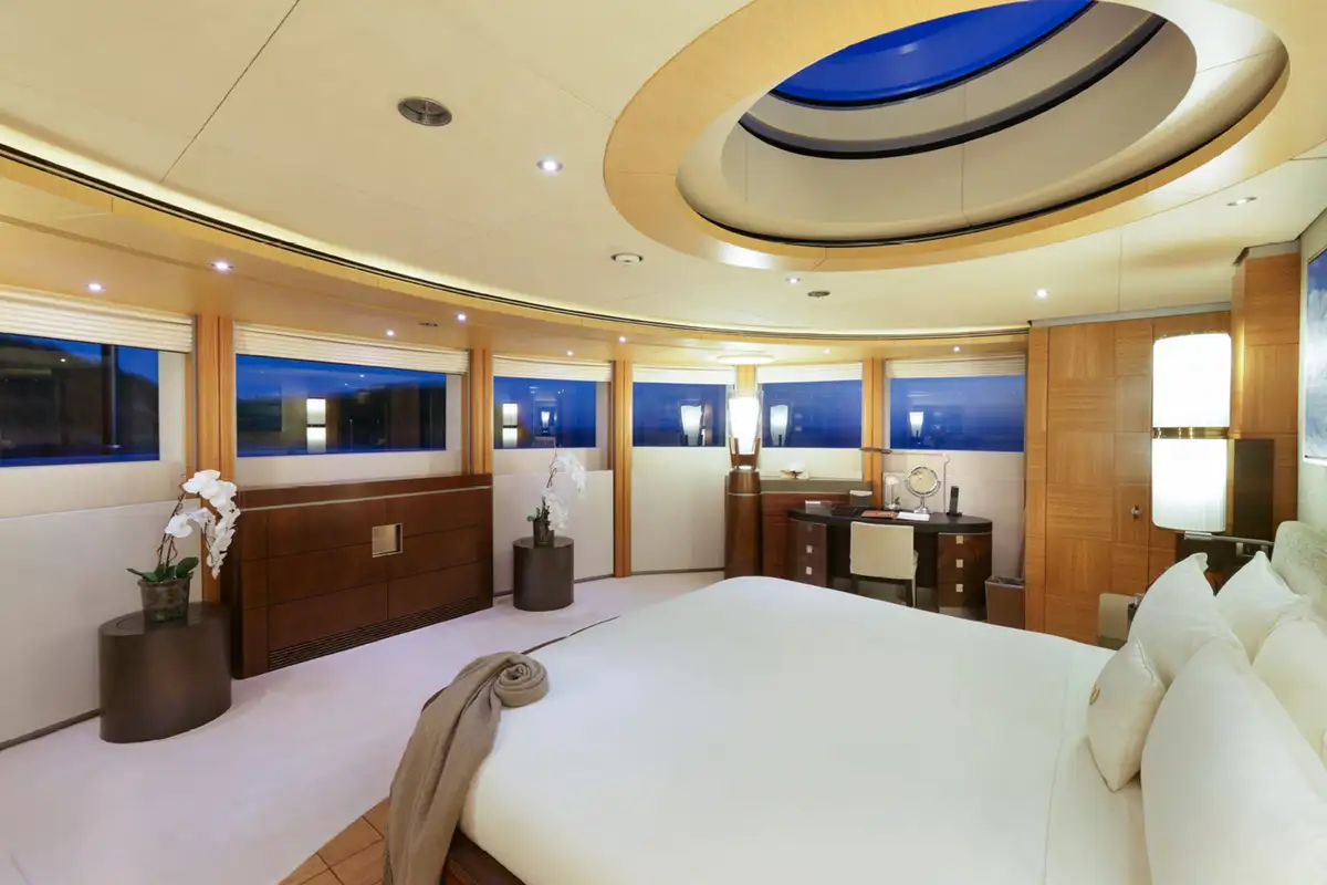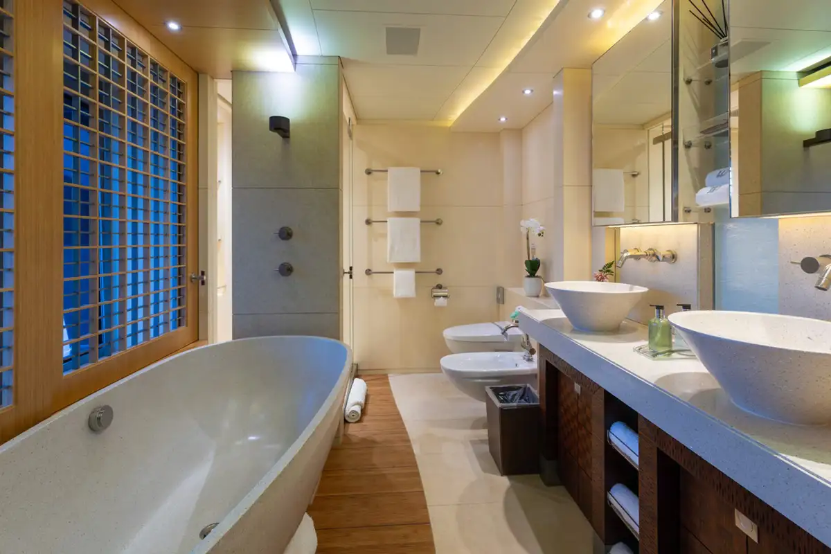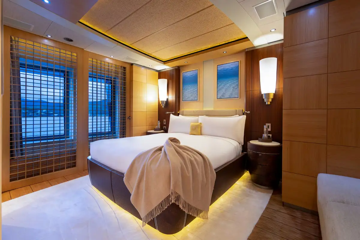 Four bright guest suites on the main deck enjoy plenty of daylight through large windows and there is a sixth suite adjacent to the master suite for guests or staff. Her deck crew is expert at the various watersports platforms and their tireless enthusiasm for guests making the most of their time aboard ensures maximum fun on the water.