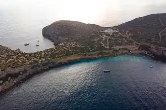 The main villa is located on the beach, marrying traditional Cycladic architecture with modern furnishings and elegant décor. Large picture windows allow the sun to illuminate the master bedroom. In the grand master suite, which slopes off a corridor from the living room, spacious living areas, a grand cast iron bath and Cycladic wood-burning fireplace set the tone. Just a 40-minute tender ride from the Port of Rafina in Athens or a quick 15-minute hop by helicopter, cosmopolitan life is on your doorstep should you ever need it.