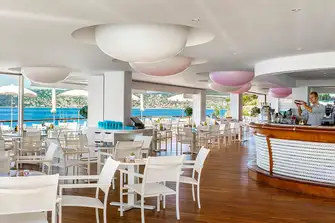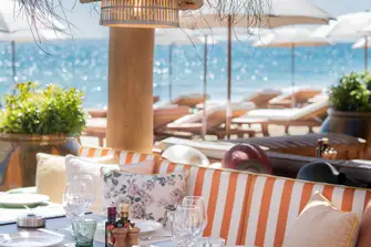 Nestled in a cove just around the bay from Monaco in Cap d’Ail, La Rèserve de Mala is hard to reach from land, which makes it ideal for the waterborne. Stylish lounge décor sits on wooden decking with an elegant cocktail bar and beachside dining – the perfect spot for a leisurely rosé lunch. Enjoy a menu of Mediterranean-inspired dishes accompanied by a superb wine list, and then retire to lounge on the upper deck.
