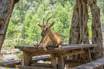 The canyon winds its way through forests of pine and cypress trees, with freshwater springs for bathing as well as abandoned villages along the way. Between the two points are 10 miles of descending trail that gradually decreases in gradient as it goes. At its narrowest, the Samaria Gorge is just three metres wide where it is known as 'The Gates', and up to 150m at its widest point. The downhill hike starts at Xyloskalo (Omalos Plateau) and descends past sheer rock walls, down through the pine forests and ends on the beach of Agia Roumeli.