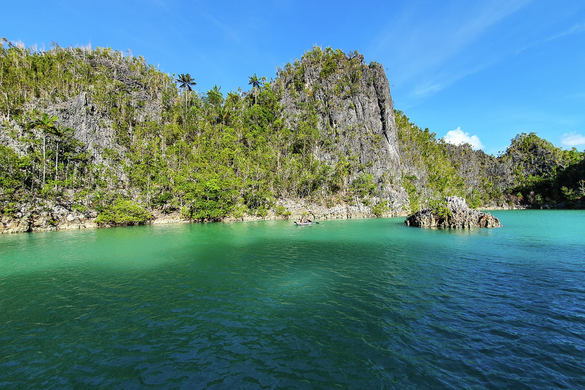 The seascape above water is also amazing. Sheer slopes of rainforest rise up from from white sand beaches and strangely shaped islets are scattered across the turquoise sea. Its a haven for rare marine mammals, from dugongs to blue whales. The jungles ashore are renowned for birds of paradise and you can see stone age rock paintings on the sea cliffs of Misool. The best time to visit is October to December – mid monsoon in most of Indonesia, but its the dry season here.