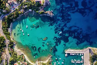 Lying to the northwest of Corfu, Cape Drastis is a stunning anchorage point which, because of its remote and hard to access location remains as nature intended. Here the strangely shaped cliffs (which look like a giant turtle head with smaller turtles swimming around it) are dotted with sea caves, and small, sandy beaches lapped by clear, shallow waters. Being the most north-westerly point on the island, the winds here can be strong, but it is a great spot for to access by tender when the conditions are right.