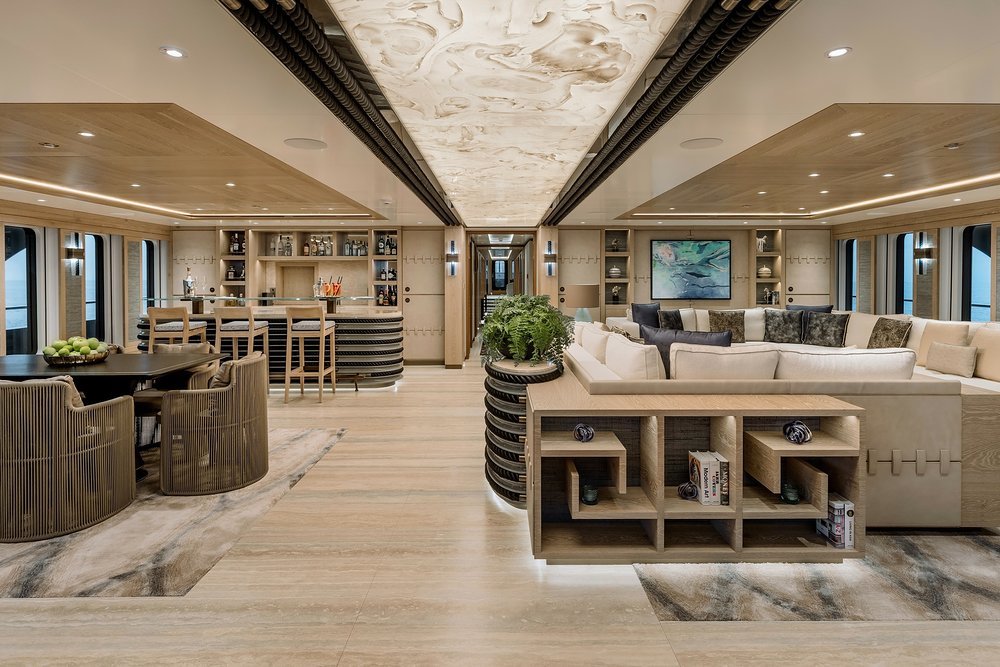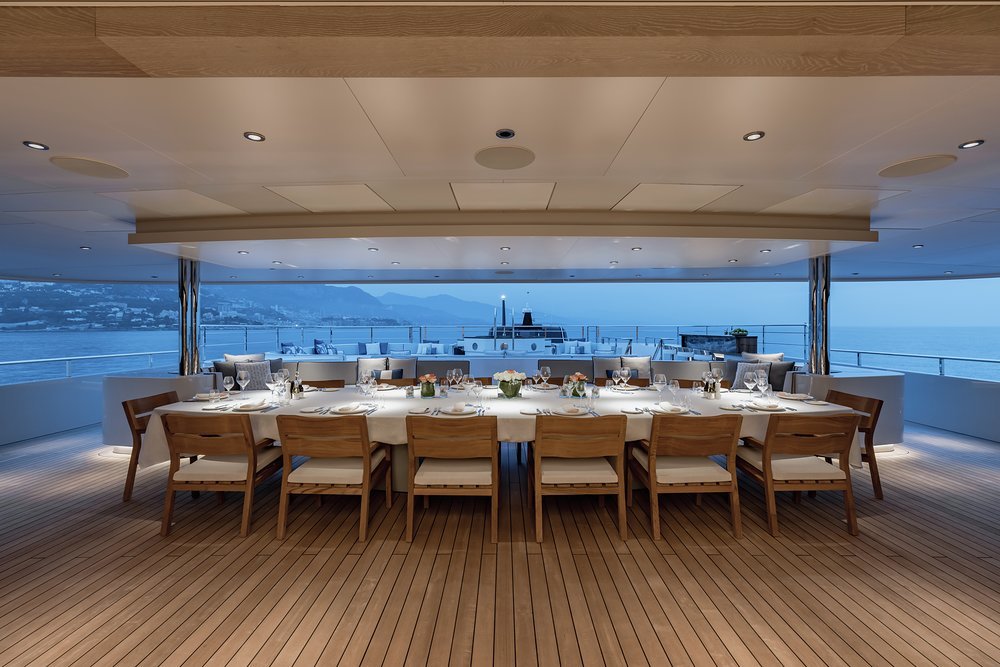 Add to that a huge boat deck with abundant storage for tenders, a helipad for an AC145 or equivalent and a staggering range of 13,000nm, this is a yacht that that can reach any and every part of the world. As well as 24 guests in eight double and four twin suites, she can also accommodate 26 crew to maintain excellent standards of service.