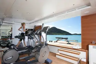 Most superyacht gyms are fully immersive indoor-outdoor spaces. They are often located in the beach club by the water’s edge or on an upper deck with a view of the sea. The gym equipment available varies, but most yachts will have cardio machines plus free weights or a Technogym. Also, look for hydro-resistant rowing machines, ellipticals, Peloton spin bikes, and running machines - everything will be state-of-the-art.