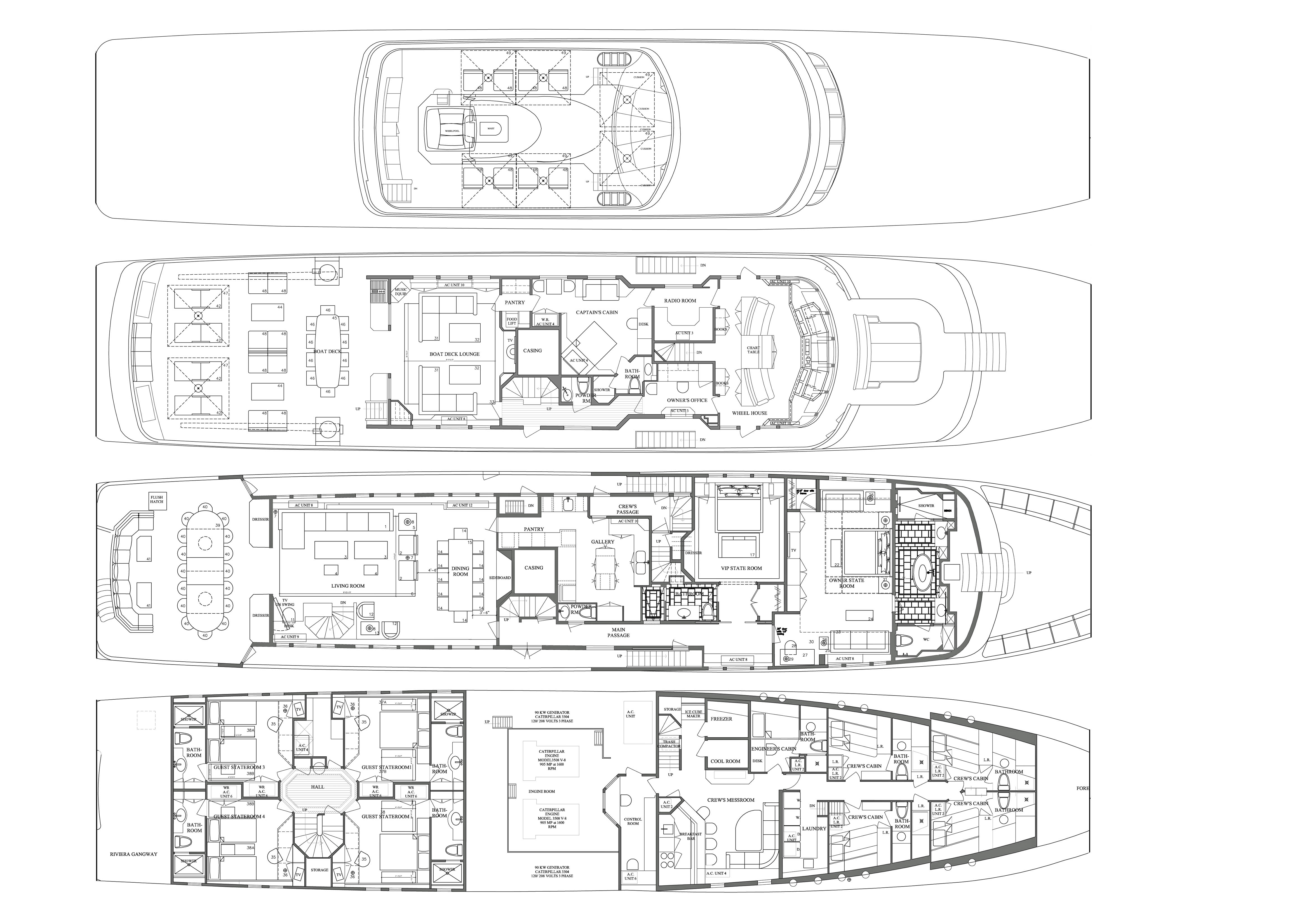 - A stylish jacuzzi area and large sun pad area provides panoramic views from the sun deck