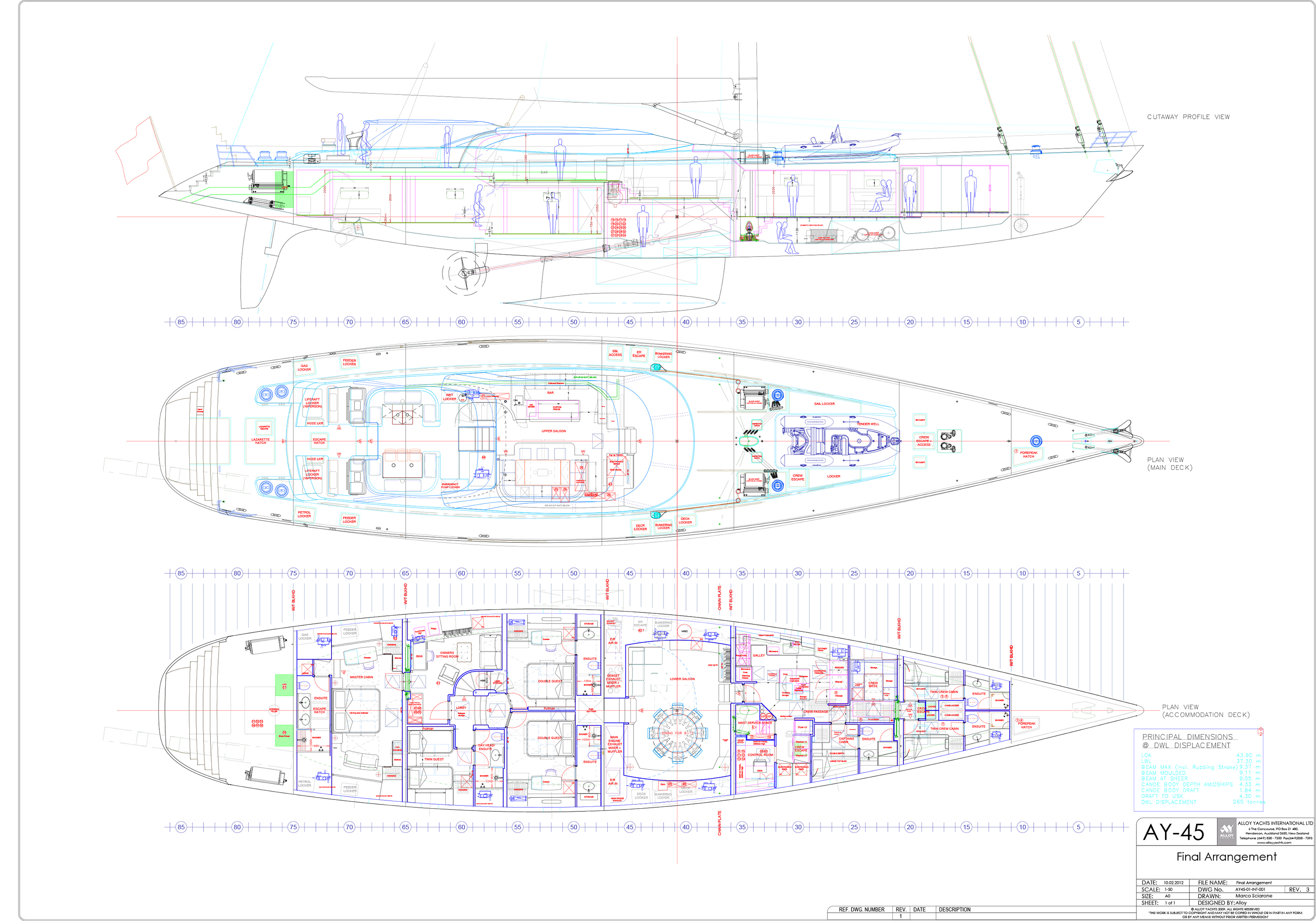 | Chantier | 2013 (réaménagé 2019), Alloy Yachts, New Zealand |