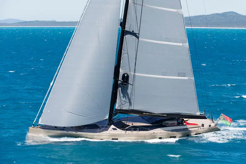 The 37.5m (123ft) Solent-rigged sailing yacht ESCAPADE has an aluminium hull and superstructure constructed by New Zealand shipyard Fitzroy Yachts and delivered in 2014. Her all-British design features a hull and superstructure by the legendary Dubois Naval Architects and her interiors are by the similarly fêted Design Unlimited.