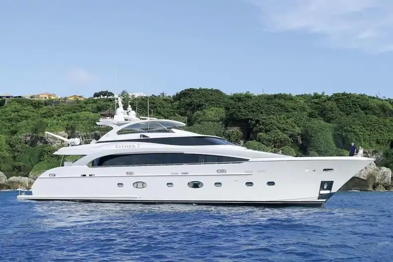 The 33.5m (110ft) motor yacht ESTHER 7, from Horizon Yachts' popular RP110 series, was constructed in fibreglass with naval architecture by Don Blount and contemporary interiors and exteriors by Espinosa Yachts Design. She was delivered in 2014.