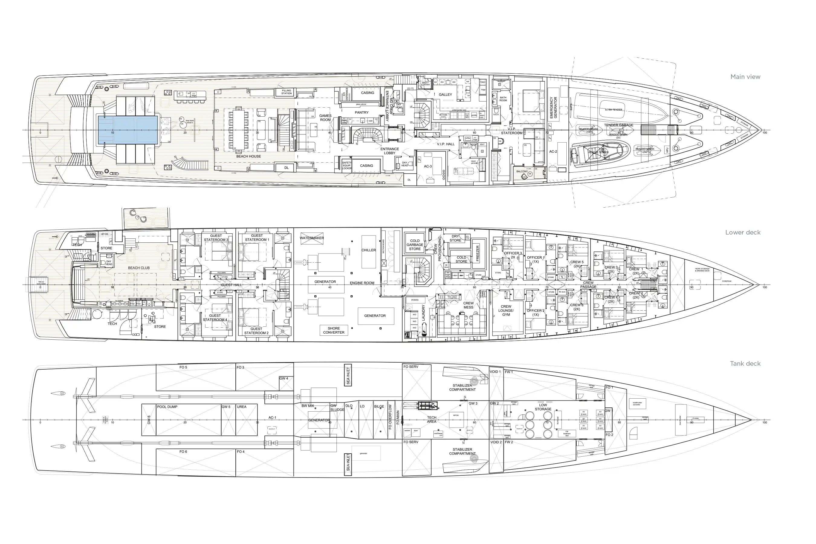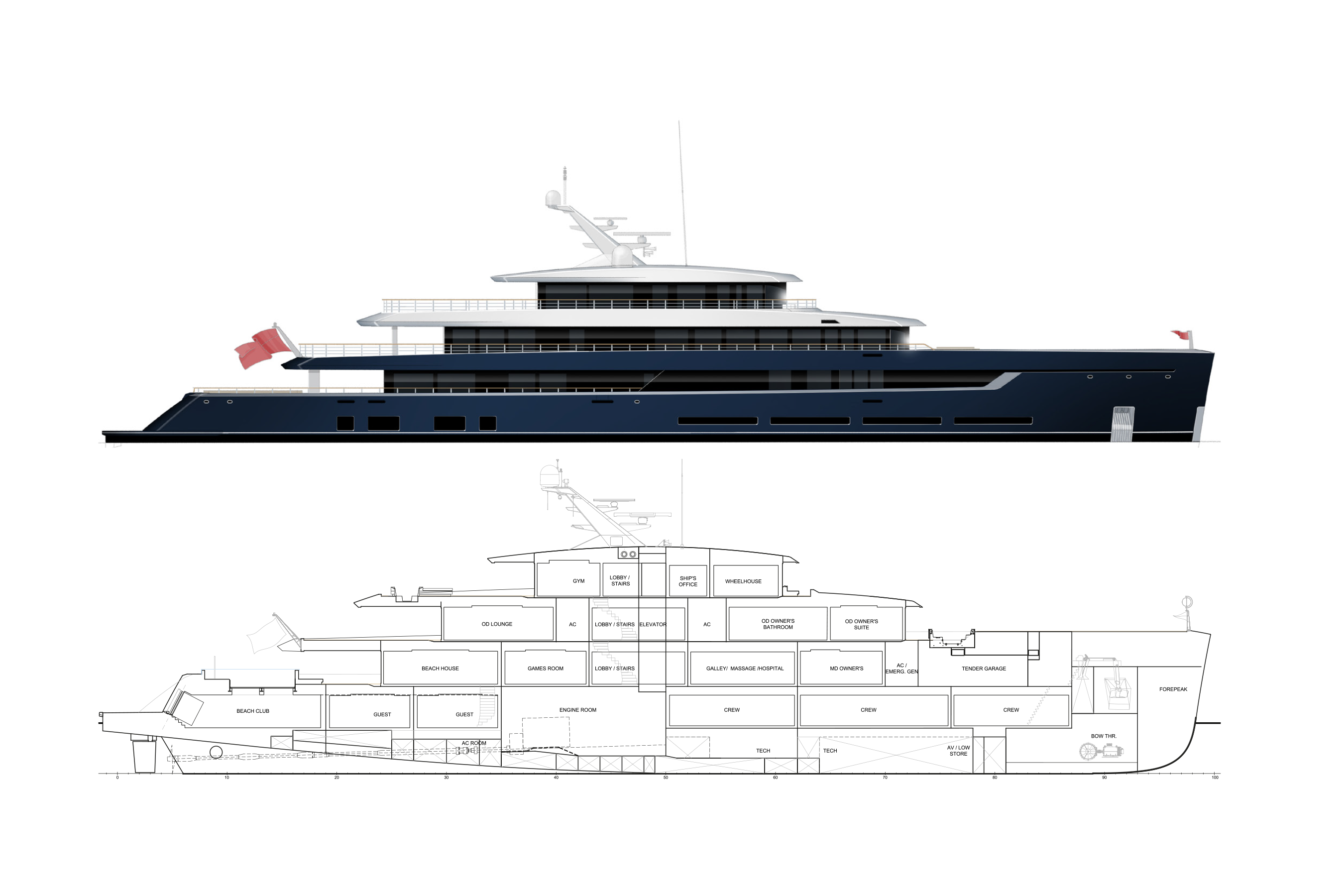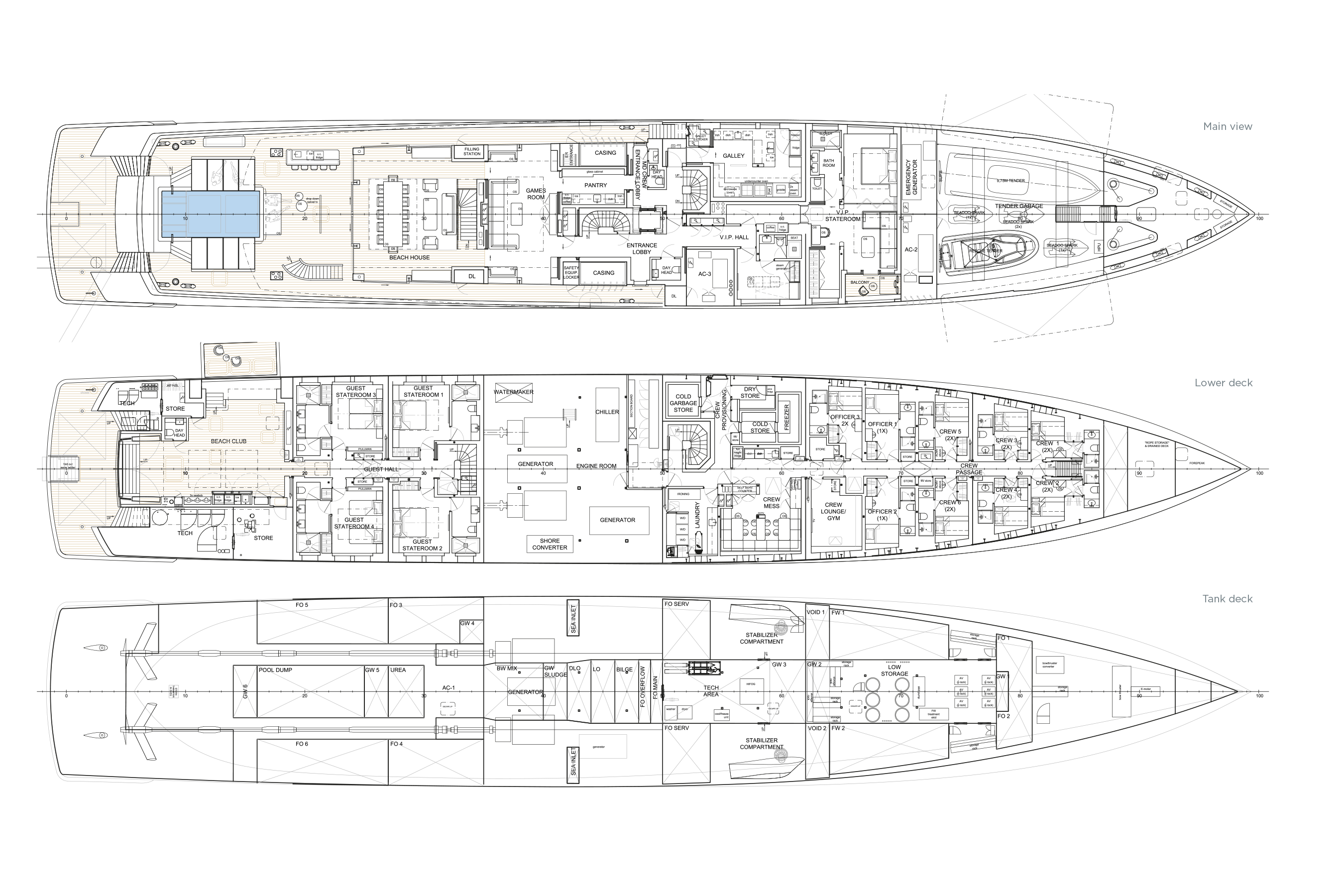 | Annexes | Space for a 9.8m tender, rescue tender and toys to be stored forward on main deck forward |