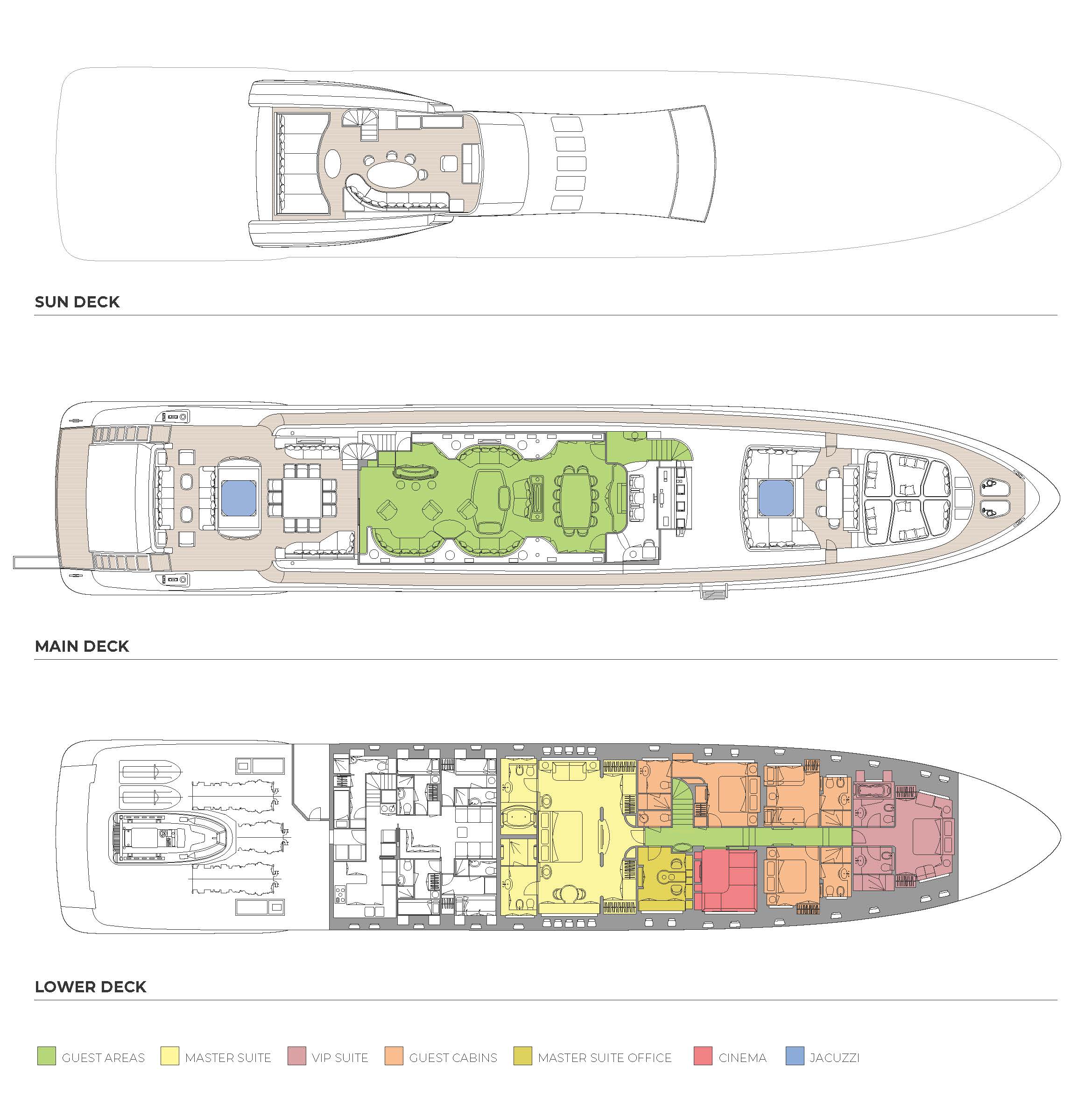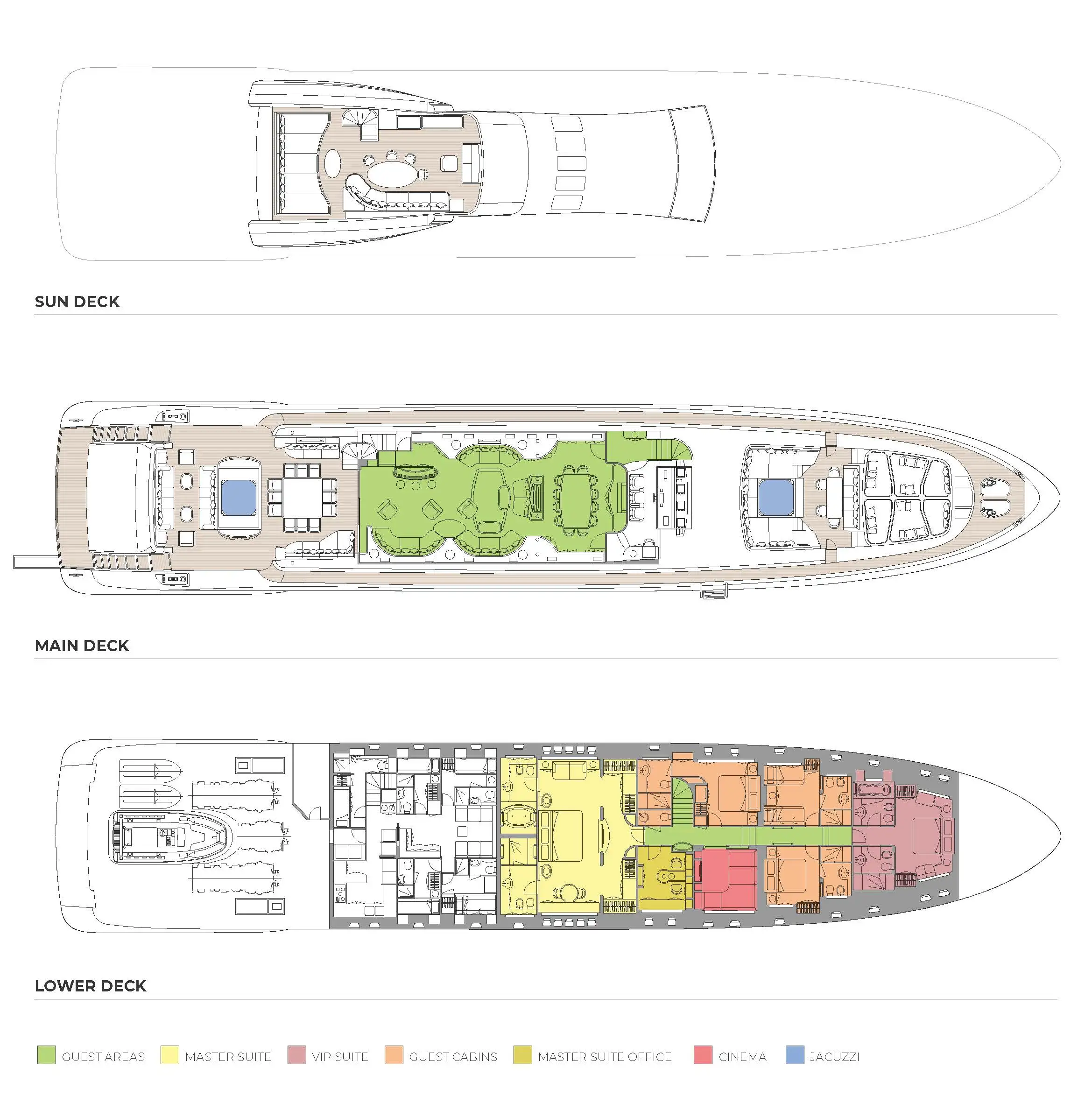 - Two Jacuzzis, one on the aft deck and one on the foredeck