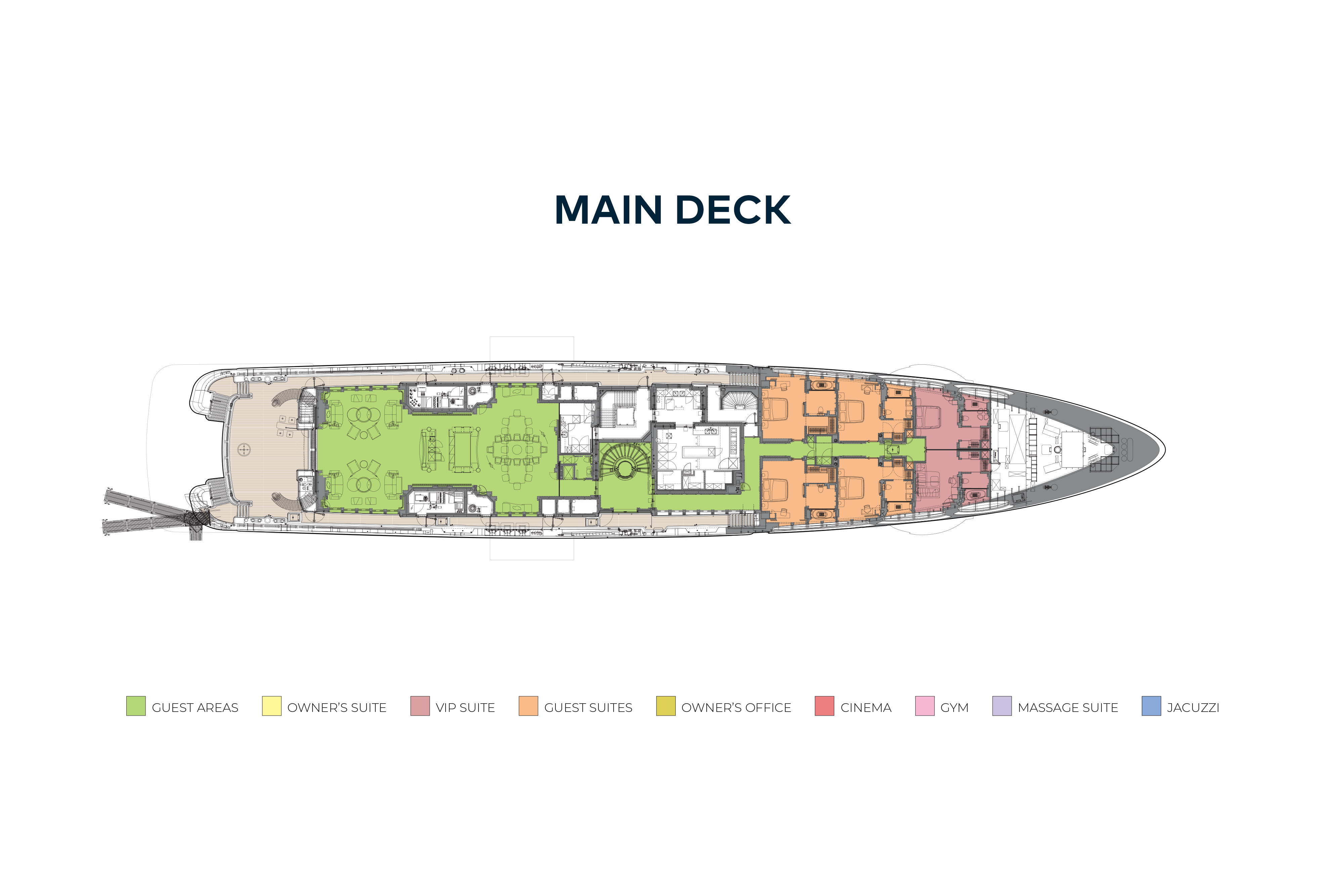 - An elevator serving all decks, from the lower deck to the bridge deck