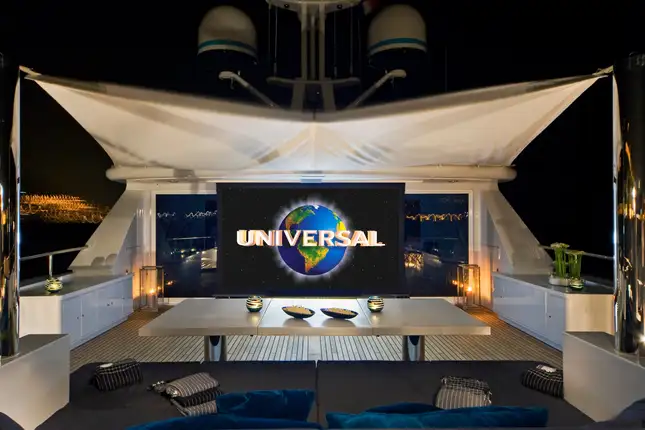 - 3m drop down cinema screen on the sun deck