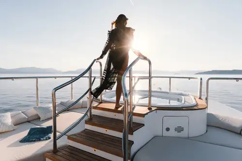 The perfect way to start a day on board O’MATHILDE is with a reviving workout in her fully equipped outdoor gym with spectacular sea views. Make your way to breakfast on the upper deck aft, where everyone is already busy planning their day’s activities and adventures while enjoying the delicacies freshly prepared by the chef.