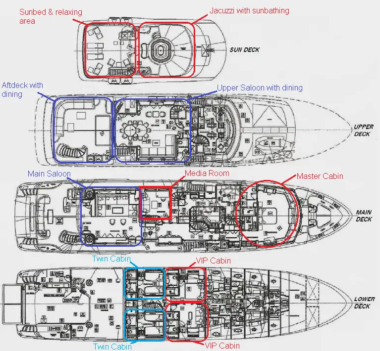 | Types de cabines | 5 (3 × double, 2 × twin, 2 × lits supplémentaires) |