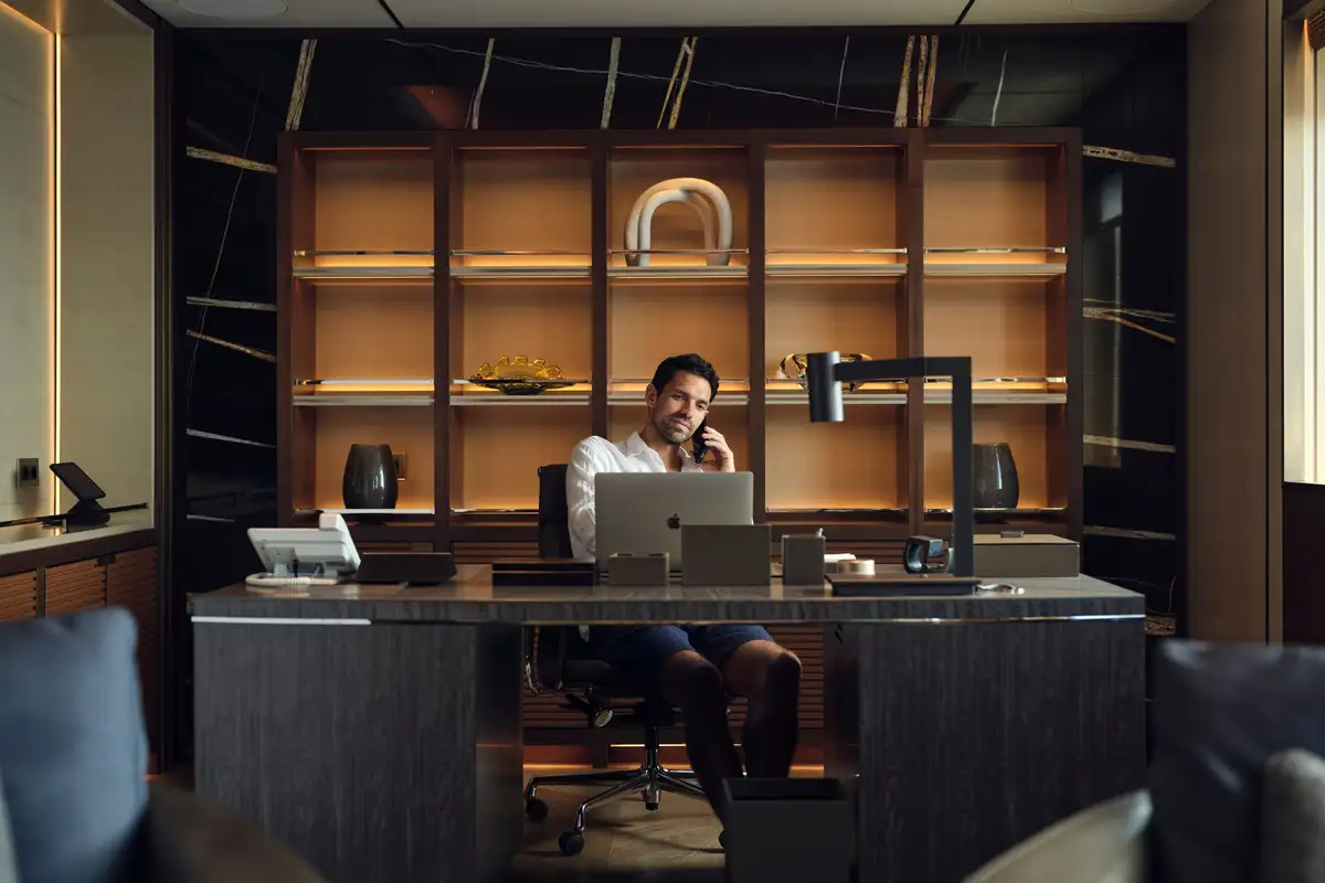 The main deck aft has two bars for all-day refreshment: one is also a sushi bar and the other has a pizza oven for relaxed all-day dining on lazy days around the huge pool. By night, the bars on the bridge and main decks convert into DJ stations for unforgettable entertainment while the lower deck cinema seating 19 guests is the place for that blockbuster experience.
