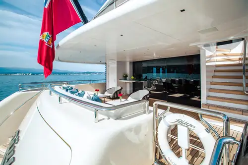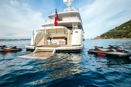 The hydraulic swim platform gives you step-free access to the water and the beach club where you can relax and snack between swims. She has an armada of watertoys to keep everyone's adrenaline levels up and the yacht is also an RYA-approved training centre so you can use the toys without a licence.