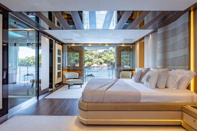 Stunning on the outside and beautiful inside, MY SANCTUARY is presented in immaculate condition. At 43m (141.1ft), the award-winning Oceano 43 design has a large, contemporary interior designed by Alberto Mancini. Her glorious interior has space and suites for 10 guests on this fabulous yacht.