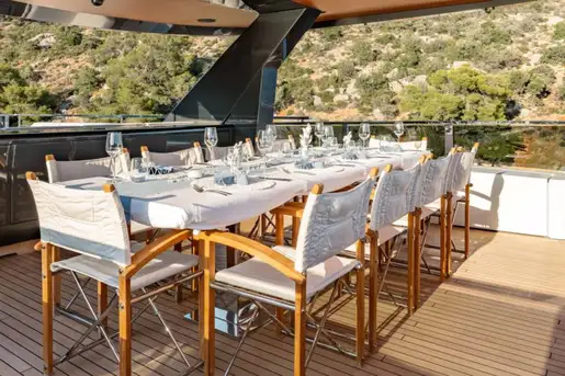 MY SANCTUARY’s sundeck, too, is an elegant and modern space with a bar and al fresco lounge area seating where you can enjoy your evening under the stars. On the deck below is the al fresco dining area, here you can enjoy the freshly made gastronomic delights from MY SANCTUARY’s award-winning Croatian chef.