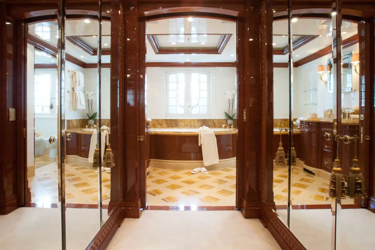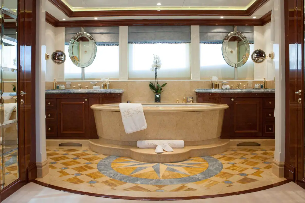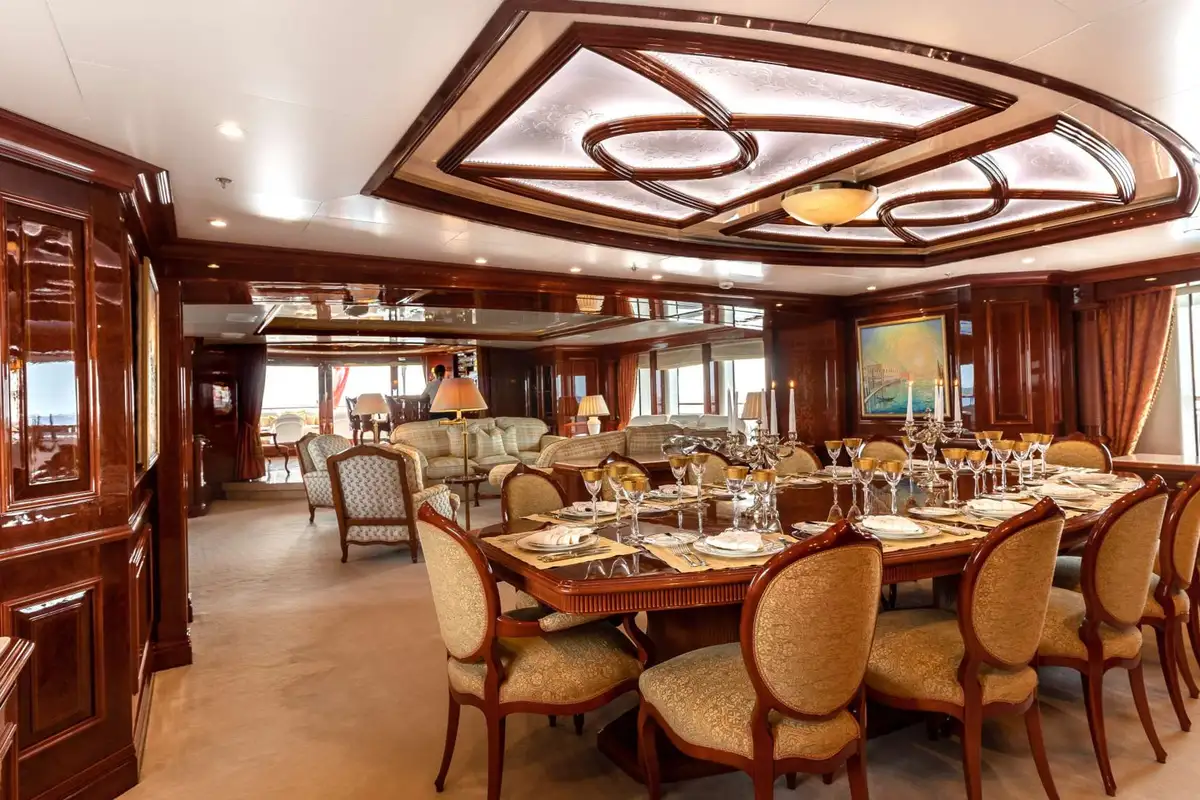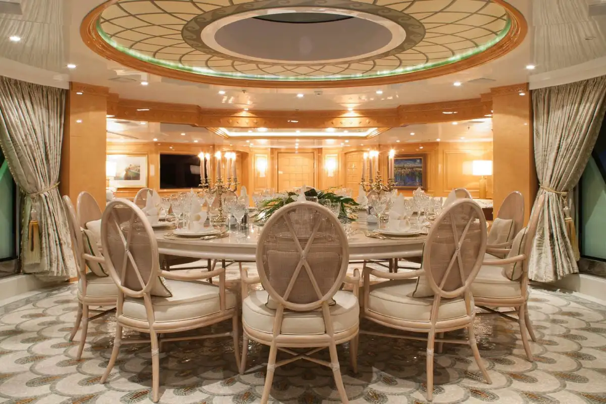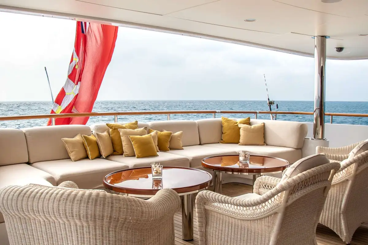 Once settled, head outside to discover the yacht’s multi-dimensional entertainment spaces spread over her three decks. You will most likely choose to spend the majority of your day on the sun deck for al fresco living at its very best. Take a dip in the jacuzzi, relax on the sun pads, dine, drink and play to your heart's content. When the sun gets too hot, take refuge on the upper deck. The sky lounge is one of the yacht’s best features and is also where you can enjoy a semi al fresco dining experience with large sliding doors open to the aft deck.
