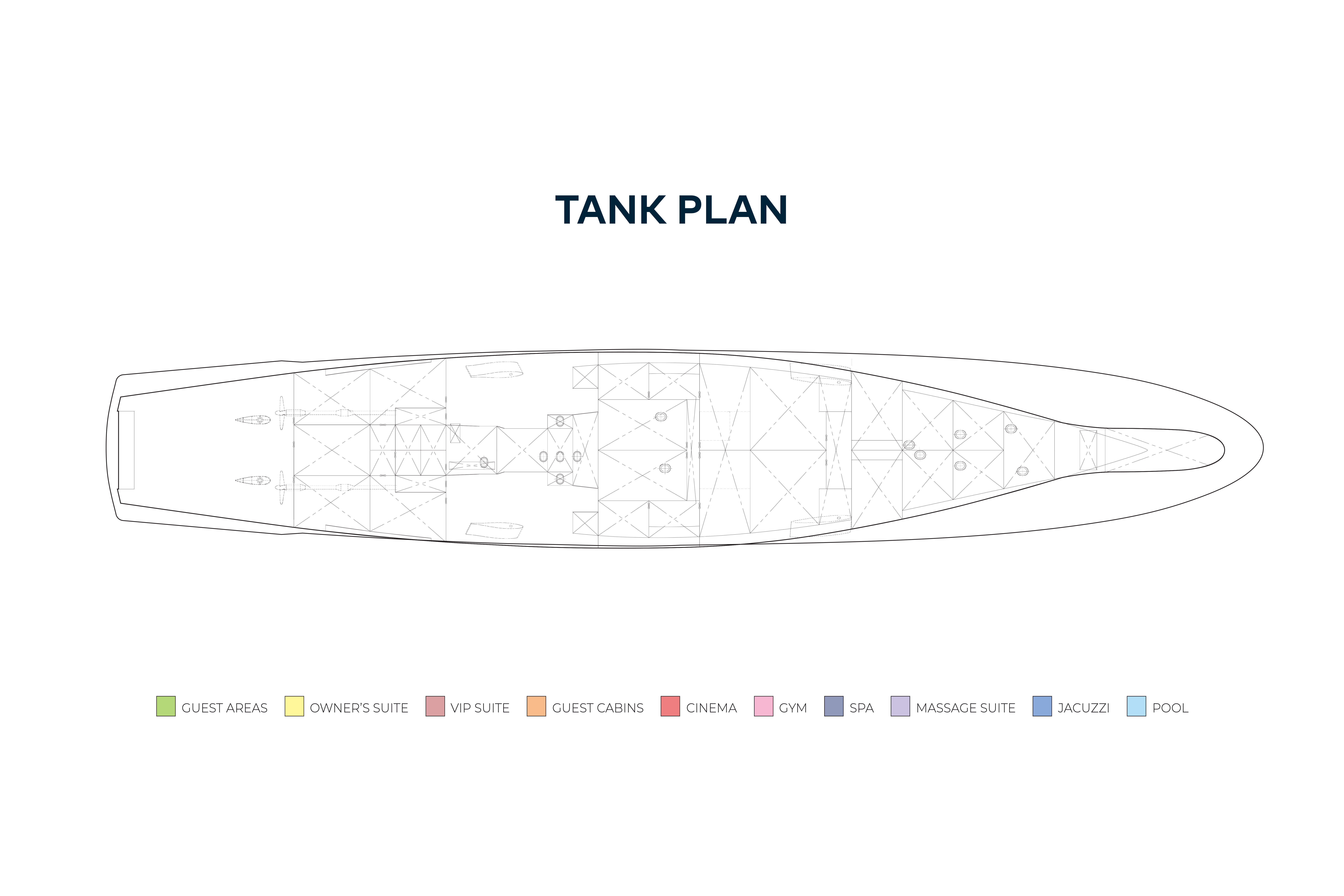 - Zero speed stabilisers to reduce any rolling motion while at anchor