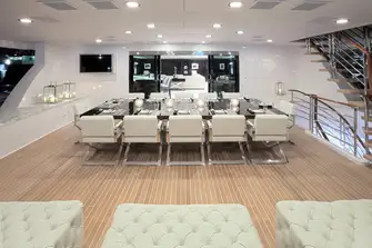 The yacht has a huge sky lounge that flows effortlessly into a covered dining and entertaining area. It is a great space well used by all guests.