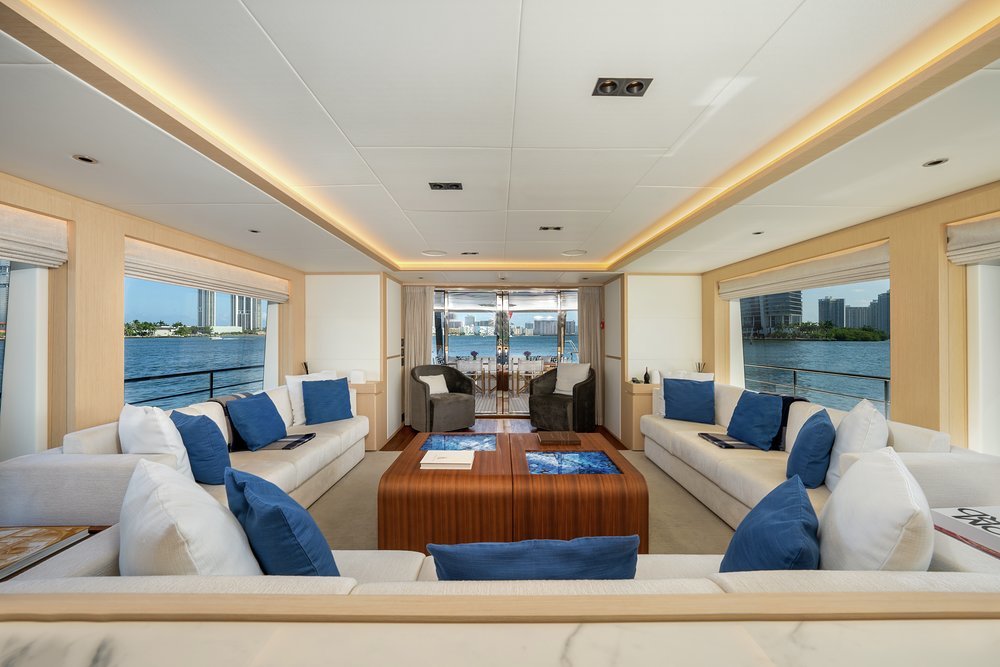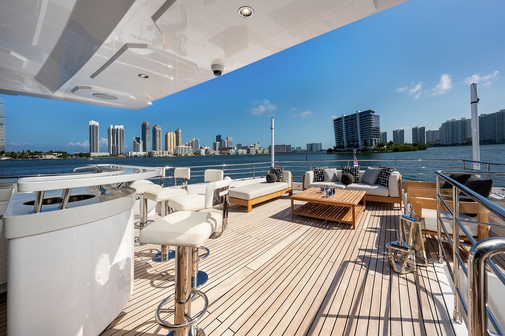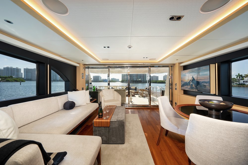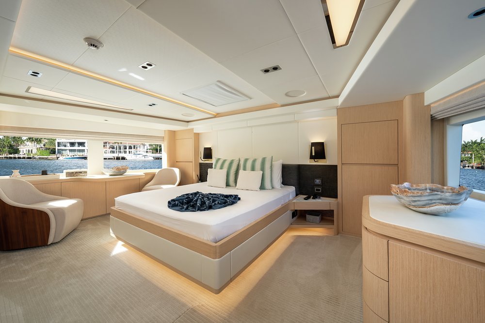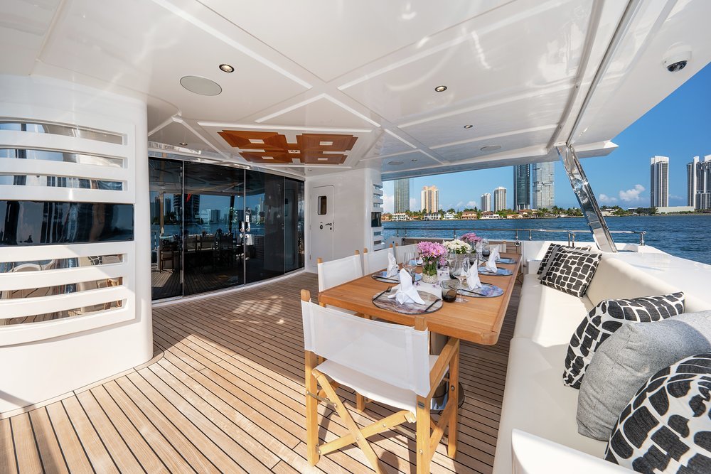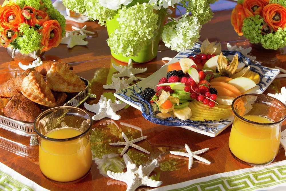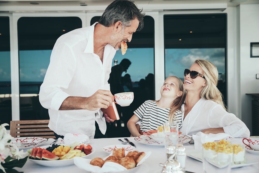 Wake up in the main deck master suite and let the morning sun pour in through huge picture windows as you anticipate the day ahead. Join the rest of the party on the main deck aft where a fragrant breakfast of juices, smoothies and freshly baked pancakes and pastries awaits. Want something specific? Just ask the crew and the chef will prepare whatever you want to order.