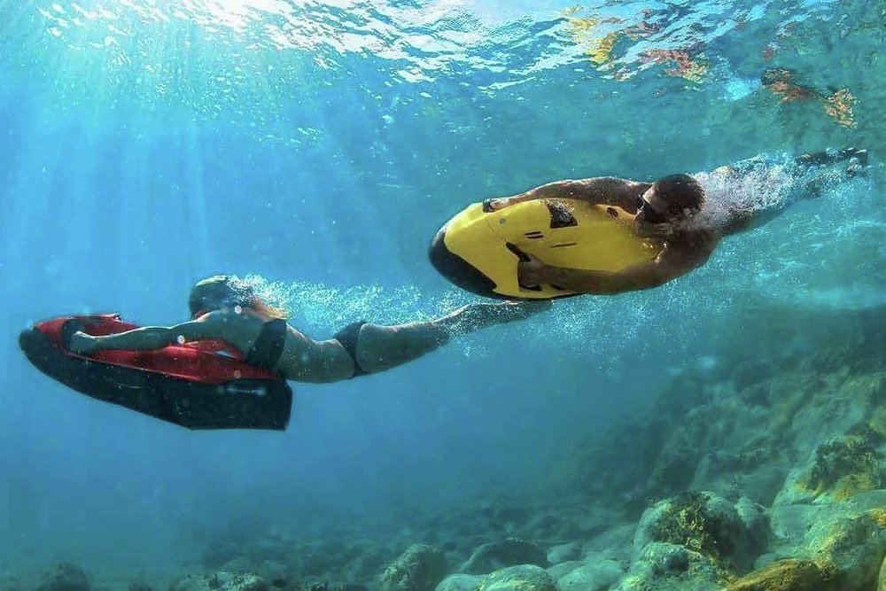 After planning the day with the captain you have a couple of hours to enjoy the watertoys. Waterskis, wakeboards and inflatable towables deliver high-speed thrills behind the yacht's powerful Williams jet tender, or enjoy some autonomous adrenaline on the jetsurfs. Want to swim like a dolphin? Try the SeaBobs. However you want to enjoy the ocean, a hydraulic bathing platform makes the water accessible to all generations.
