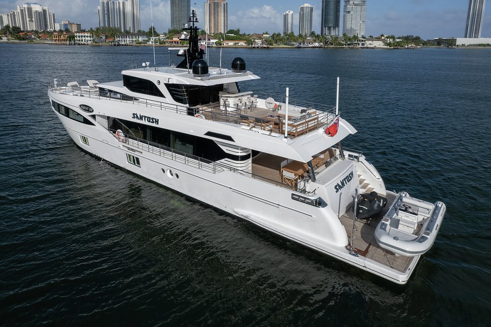 There is no better way to experience these gilded cruising grounds this summer than from the teak decks of the 32.1m SANTOSH, brand new in 2020.