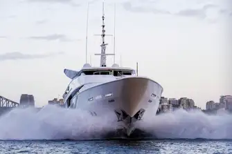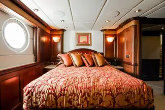 Twin 2,735hp MTU diesel engines give this 243GT yacht a lively top speed of 27 knots, she cruises at 13 knots and has a maximum range of 1,647nm at her passage speed of 12 knots. Naiad 420 stabilisers reduce roll underway.