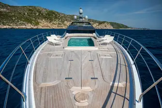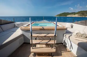 The foredeck's saltwater pool is used for tender stowage on
