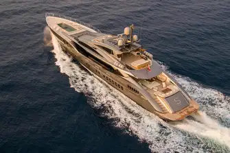Twin 4,613hp MTU diesel engines give her a top speed of 30 knots, a cruising speed of 17 knots and a range of 4,600nm at her 15-knot passage speed. Seakeeper gyro stabilisers ensure comfort underway and at anchor.