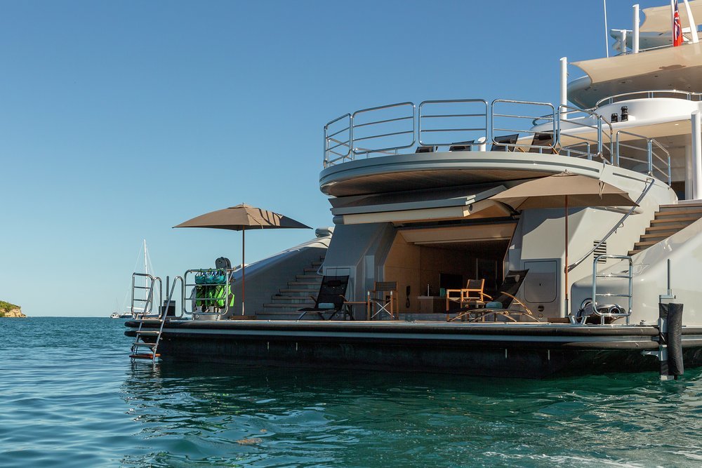 SIREN’s greatest quality is the amount of outdoor space, whether it is the vast sun deck and outdoor cinema, the interior main deck that seemingly flows into the spacious outdoor spaces or the extra wide stairs leading down to the generous swim platform. The main deck in particular is complemented by 2.3m (7.5ft) interior doors and 2.8m (9.2ft) exterior headroom so that there is comfort for even our tallest guests.