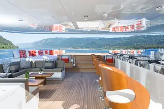 Her full beam master suite on the main deck and VIP suite and four further doubles on the lower deck complete accommodation for 12 guests.