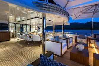 She went on become a sought-after charter yacht under Burgess Charter Management. She combines expansive and versatile outside spaces including a large sun deck with jacuzzi, Portuguese bridge and open air dining on the bridge deck aft with clean, restful, bright and stylish interiors.