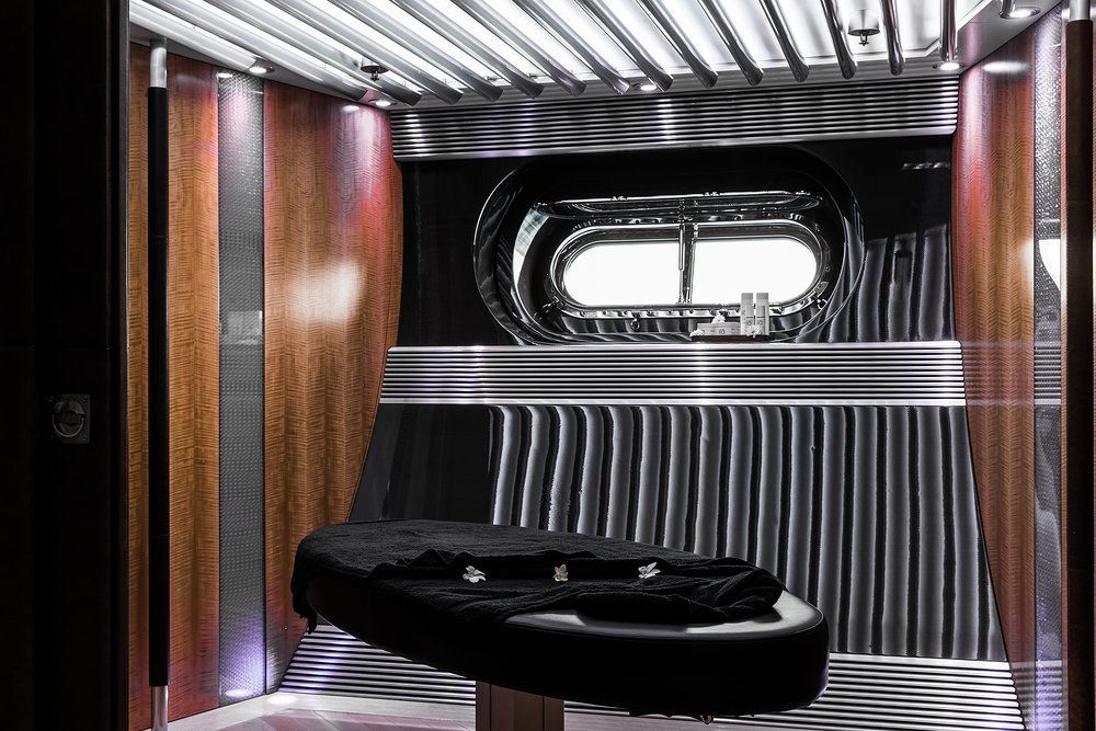 Today the yacht is as iconic as ever. 'She is in immaculate condition,' says Hannah. Her exterior styling and interior design, by the serial award-winning British designer Ken Freivokh, evoke the industrial Art-Deco aesthetic of Fritz Lang's Metropolis, a bold symphony of wood, leather, steel and glass. 'She's incredible,' Hannah continues. 'Around every corner there are stop-and-stare artworks and architectural features, like the three-deck sky-lit atrium where the stairs spiral around the main mast. She's as fresh and impressive as the day she was launched.